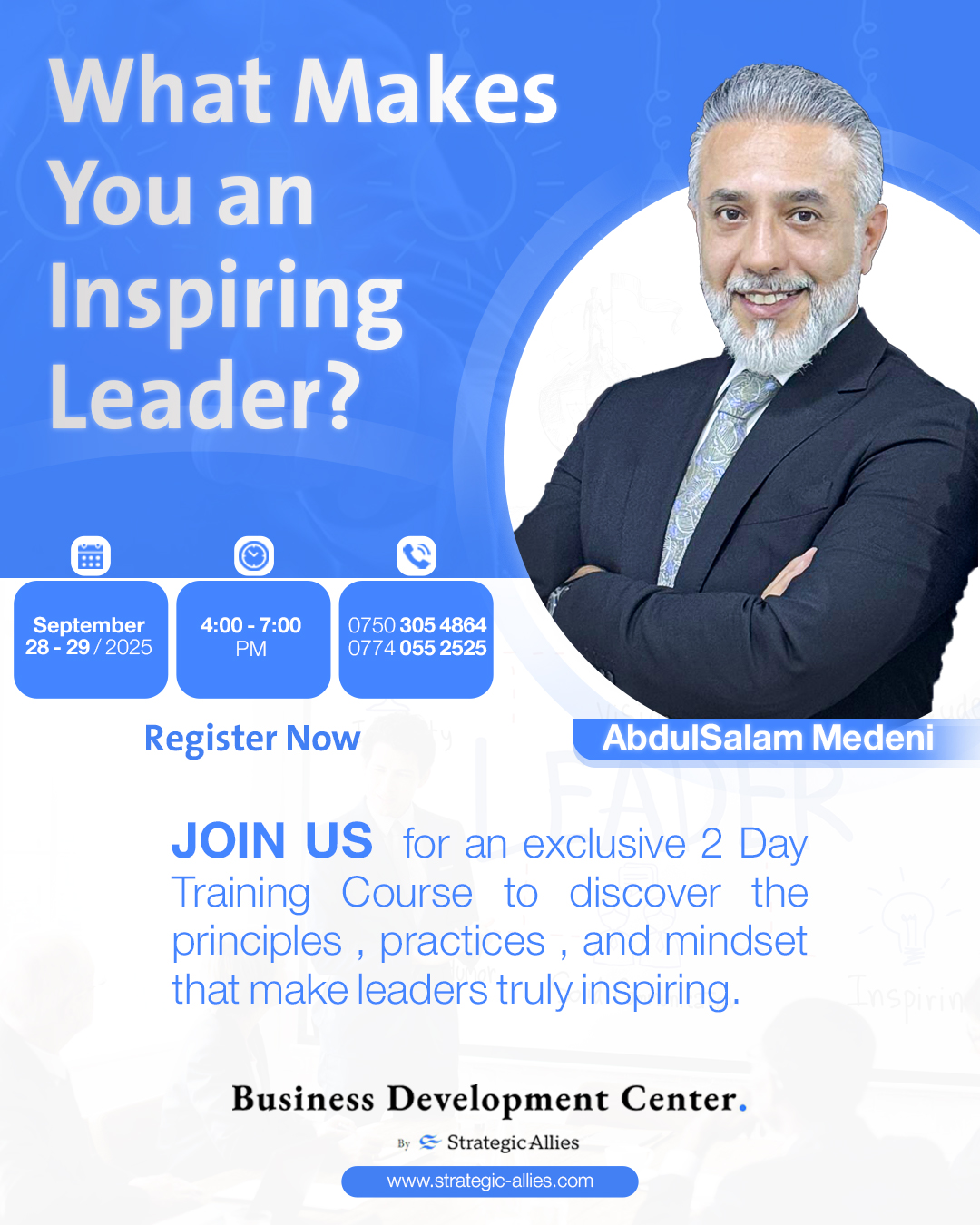 Mr. AbdulSalam is a highly respected leadership and management development expert with extensive experience in leadership, training executives, entrepreneurs, and young professionals across Iraq and MENA Region. Over 20 years of professional experience in leadership, organizational development, and capacity building. Mr. Abdulsalam has worked in deferent Roles at top institutions and organizations, including:
